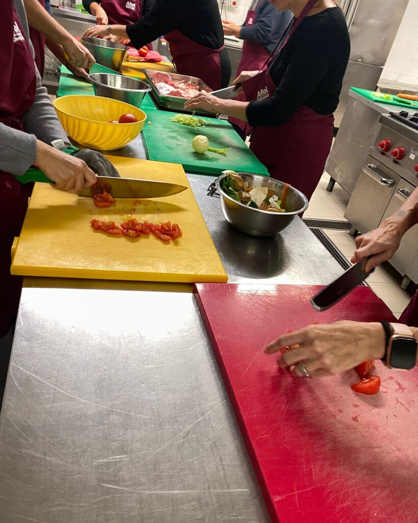 I partecipanti hanno imparato a preparare fondo bruno, fondo bianco comune e brodo vegetale, per dare profondità e gusto alle proprie ricette. Poi spazio alla pratica con due piatti classici della cucina italiana: linguine con ragù di gamberi e zucchine e un cremoso risotto alla parmigiana, perfetti per mettere in pratica le tecniche appena apprese.